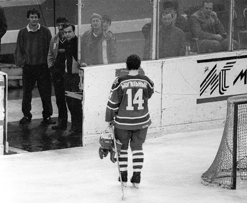 | Проявлял Александр свои бойцовские качества и в чемпионате СССР. В 1989 году, в матче против «Спартака» он мощно разобрался с защитником красно-белых Сергеем Ящиным. Хватило мощного удара в лицо. После матча Могильный расскажет, что соперник был сам виноват в таком исходе: «Я шел с шайбой на большой скорости. И только в последнее мгновение увидел перед глазами клюшку соперника. Я чуть увернулся — иначе мне свернули бы челюсть. А так отделался выбитым зубом». Ящин точно пожалел, что пытался травмировать 20-летнего таланта — у него по итогам этого короткого боя был диагностирован перелом челюсти: «Мне сейчас и не вспомнить, с чего все началось… Играли на Малой спортивной арене, и «Спартак» проигрывал. Наверное, что-то я сделал, раз он накинулся. Просто так не заехал бы, думаю. Сергей Федоров держал сзади. Больше в той драке Федоров себя проявил. Но историю раздули так, что мне самому стало неприятно». «Да, спартаковец Ящин применил грязный прием. Однако никто не позволял Могильному заниматься самосудом. Он же после остановки игры поднялся со льда, сбросил перчатки и поехал сводить счеты с обидчиком на глазах у растерявшихся помощников судей, в чьи обязанности входит предотвращать подобные бои из разряда боксерских. На глазах у 9000 зрителей, испортив им воскресное настроение и впечатление от игры. Полагаем, что инцидент, происшедший под занавес матча ЦСКА — «Спартак», должен стать предметом серьезного разговора на специальном заседании технической комиссии и президиума Федерации хоккея СССР, а виновники — понести наказание», — написал на следующий день «Советский спорт». А наказание для Могильного действительно оказалось очень суровым: он был дисквалифицирован на 10 матчей и больше никогда не играл в чемпионате СССР — вскоре хоккеист решился на свой знаменитый побег. | |
